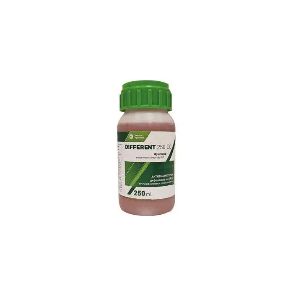 Different 250 EC je sistemični fungicid na bazi difenokonazola, jedne od najefikasnijih aktivnih materija iz grupe triazola. Sa koncentracijom od 250 g/l i formulacijom u obliku koncentrata za emulziju (EC), ovaj preparat pruža snažno protektivno, kurativno i eradikativno delovanje protiv različitih biljnih bolesti. Zahvaljujući sposobnosti da se sistemično širi unutar biljke, Different 250 EC deluje i preventivno i nakon pojave infekcije, čineći ga izuzetno fleksibilnim rešenjem za zaštitu važnih ratarskih i voćarskih kultura. Posebno je efikasan u suzbijanju čađave pegavosti lišća i krastavosti plodova kod jabuka, kao i pegavosti lišća kod šećerne repe.